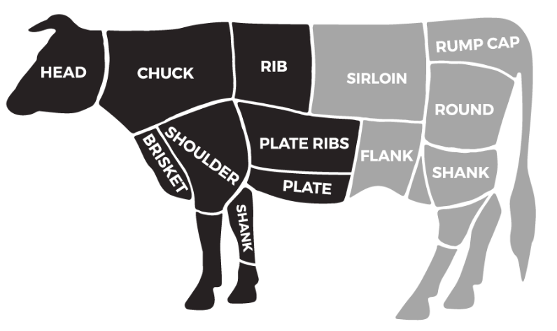 Different parts of a steer or lamb taste different, and are cooked differently. Use this guide to learn more about kosher meat and find new cuts to enjoy. Since only the front half of red meat animals is used for kosher, those cuts are shown in black on the diagram, and explained below. The non-kosher cuts (shown in grey) are for reference only.