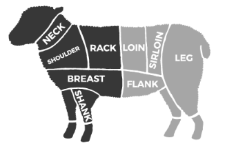 The lamb shoulder contains the most diverse cuts of all the lamb primals. Tender meat from the shoulder can be used for kabobs, and tougher pieces can be made into braising roasts. We also cut shoulder and rainbow chops from this primal.